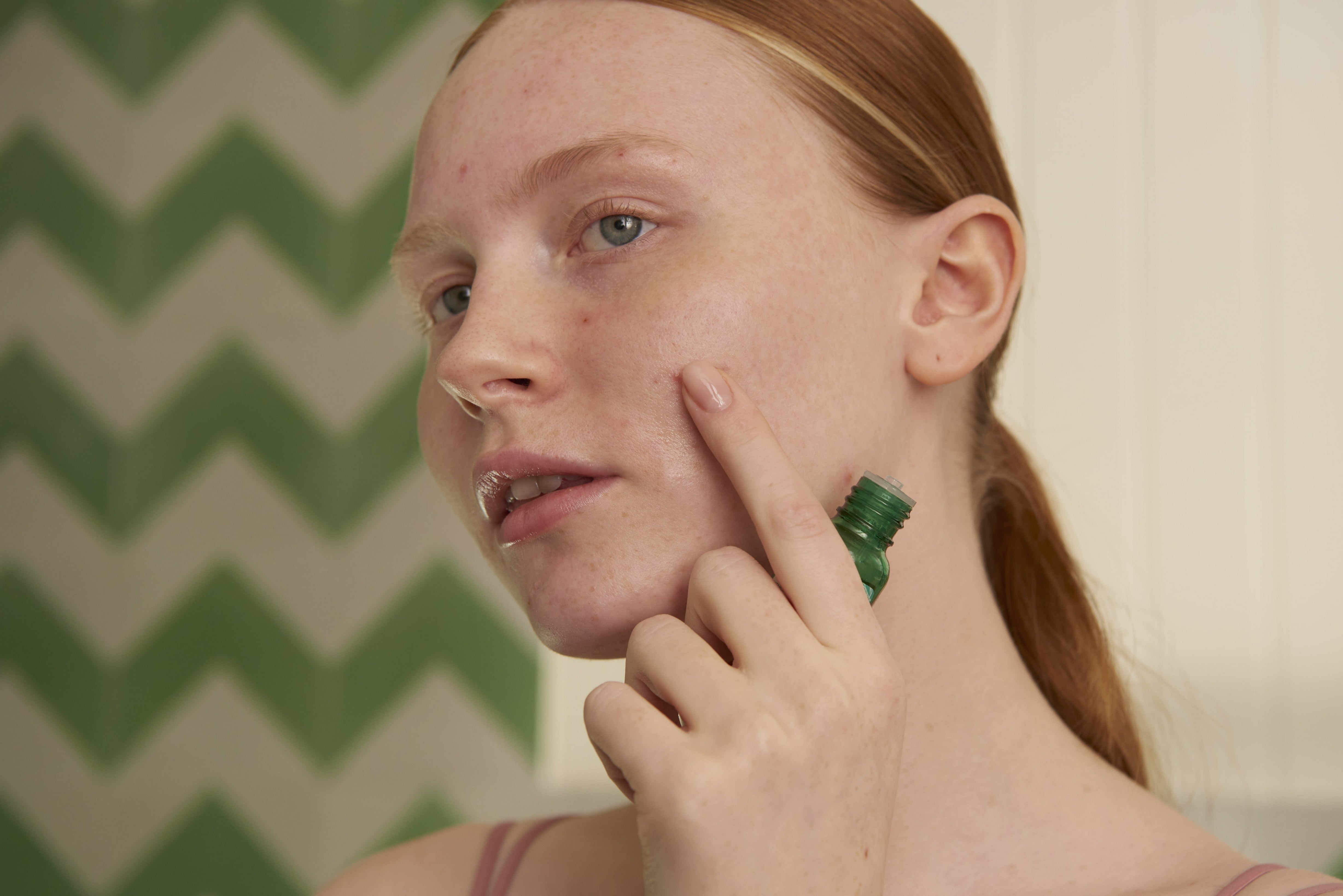 Appliquez notre tonique visage à l'arbre à thé. Déposez quelques gouttes sur un coton et appliquez-le sur tout le visage.