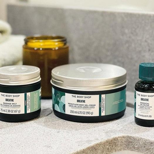 - Beginne mit einem Peeling und einer Reinigung mit unserem Breathe Whisked Body Polish und dem Breathe Purifying Hair & Body Wash.