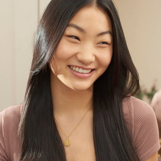 - Teile dein Haar mit einem Kamm oder deinen Fingern in Strähnen auf und gib 1–2 Tropfen Serum direkt auf die Kopfhaut jeder Strähne.