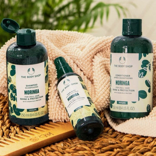 - Rince bien, puis utilise notre après-shampoing Moringa Shine & Protection.