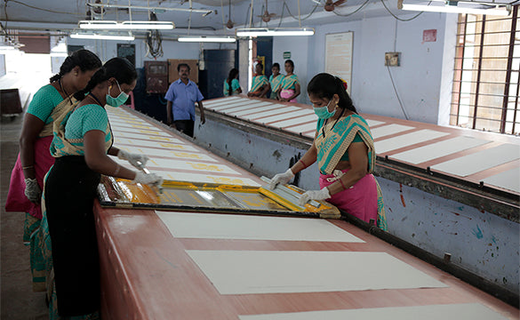 Wir beziehen unsere handgeschöpften Papier- und Geschenkverpackungen aus Community Fair Trade von Get Paper Industry in Kathmandu, Nepal, bezogen. Wir sind wirklich stolz darauf, seit 1989 mit GPI zusammenzuarbeiten. Diese Fachkräfte verwenden zur Herstellung des Papiers Abfälle und recycelte Materialien (wie Baumwollabfälle und Bananenstämme).