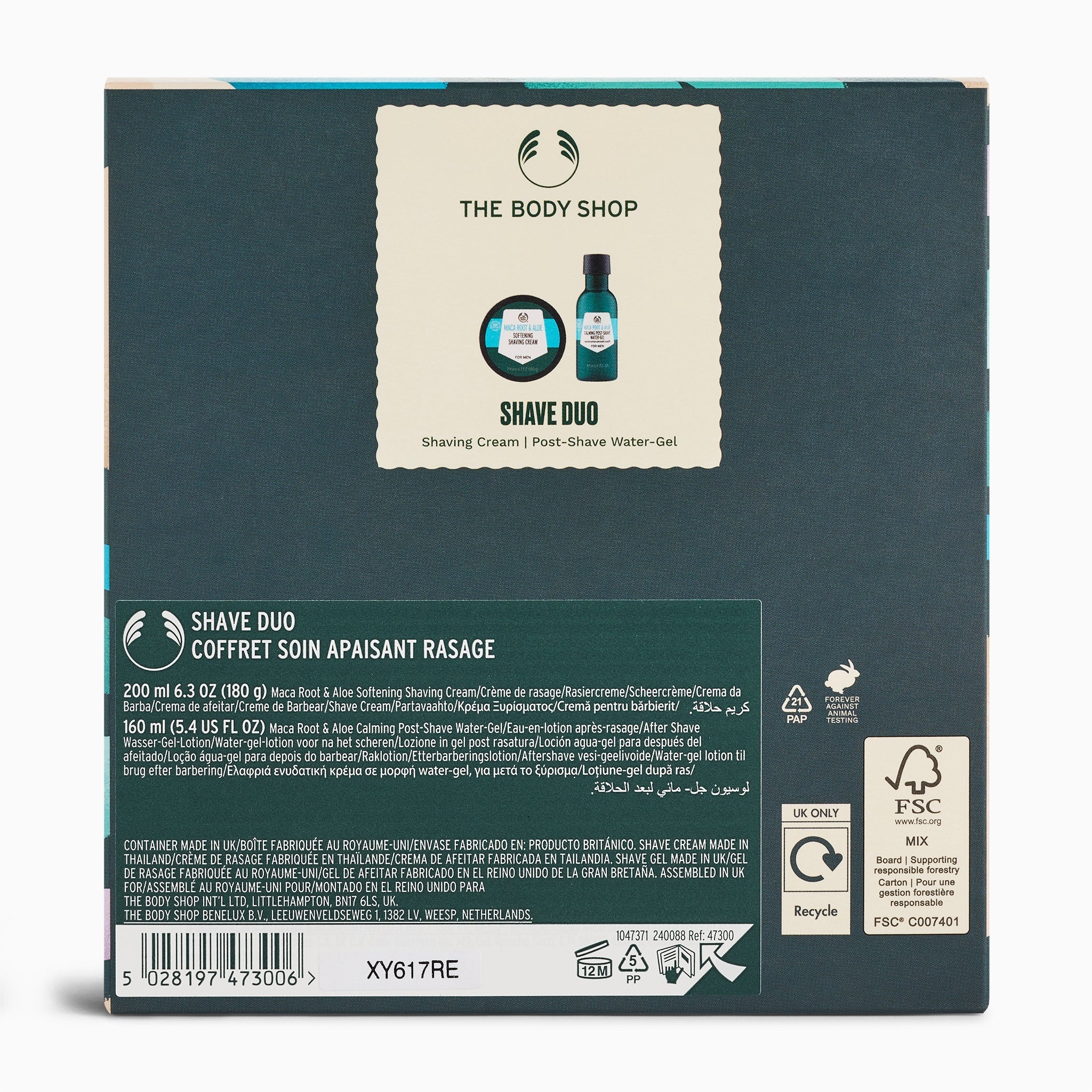 Im Set enthalten sind die Maca Root & Aloe Rasiercreme und das After-Shave Gel – beide mit fair gehandeltem Aloe Vera aus Mexiko angereichert, um trockene Haut zu beruhigen und zu pflegen. Zusammen sorgen sie für eine glatte, angenehme Rasur und ein erfrischtes, gepflegtes Hautgefühl.